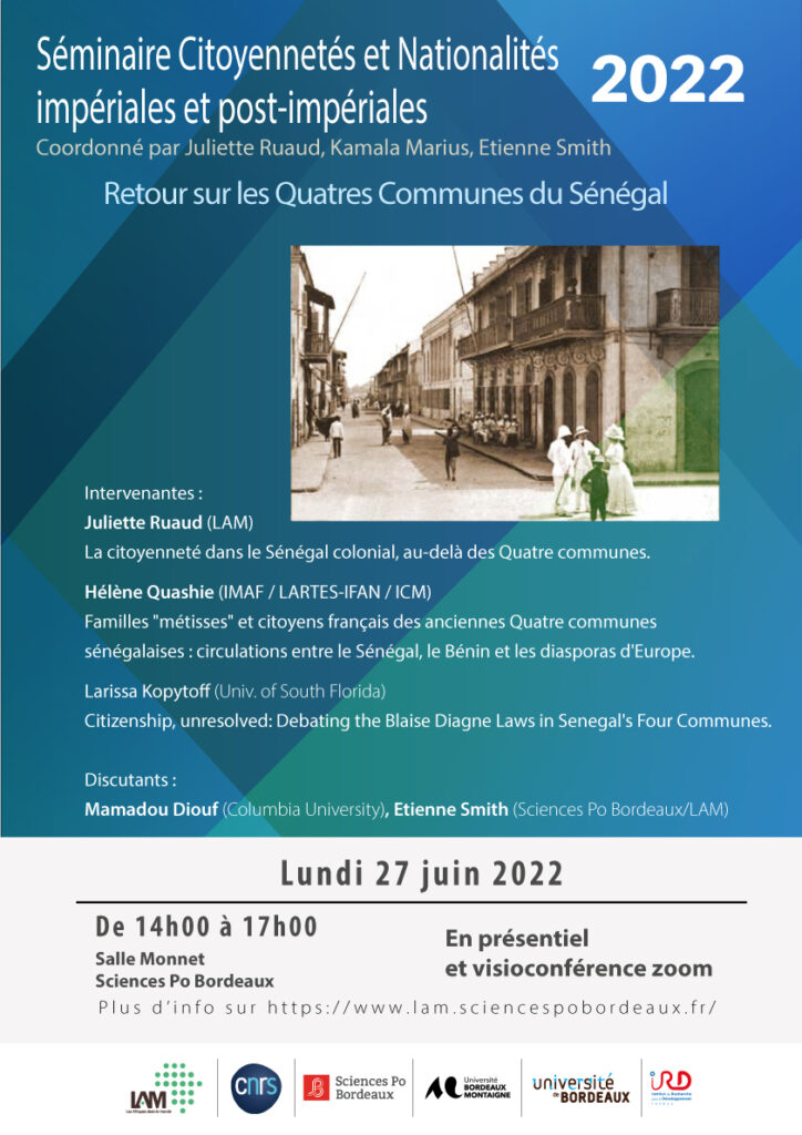 Séminaire Citoyennetés et nationalités impériales et post-impériales : retour sur les 4 communes du Sénégal