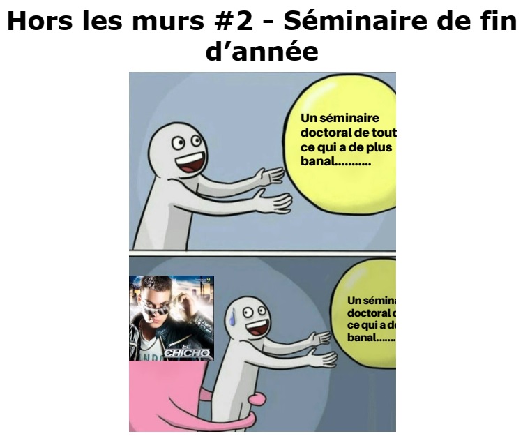 – Une première partie abordera la question des comités de suivi de thèse dans l’optique de répondre collectivement à d’éventuelles interrogations et discuter des enjeux différenciés que nous percevons dans ce dispositif d’accompagnement. Cette première partie sera également consacrée au bilan de l’année : nous en profiterons pour revenir sur les séances passées, solliciter vos retours ainsi que vos attentes quant à l’année prochaine.