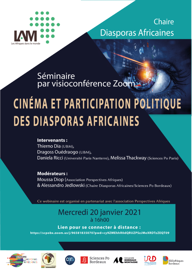 Le webinaire « Cinéma et participation politique des diasporas africaines » aura lieu le 20 janvier 2021 à 16h.